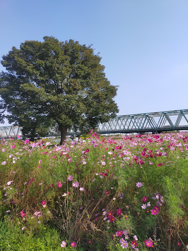 荒川の河川敷に広がるこの公園は、四季折々の花を楽しめる場所としてとても気に入っています。春は真っ赤なポピーが一面に咲き誇り、初夏から秋にかけてはコスモスが風に揺れる姿が見られます。大きなケヤキの木の周りに花が咲いていて、その景色はまるで絵画のようで、散歩のたびに立ち止まってしまいます。時期によっては刈り取りが行われて、持ち帰ることもできるのも嬉しいポイントです。電車やスカイツリーと花畑を一緒に眺められるのも、都内ではなかなか味わえない魅力だと思います。