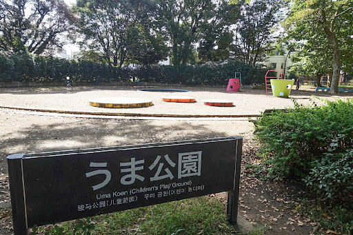 駒澤公園出入り口階段上がるとすぐある小さな公園。 トイレも新しく出来て良い。 砂場もあるので昼間は子供達が沢山遊んでいる。なのでワンコ連れの私はうま公園に入るのは早朝や夕方が多いです。 気になるのは特に早朝に大型犬2匹をノーリードで遊ばせてるおばちゃんがいる事。ワンコは攻撃的ではないのですがうちの小型犬にも走り寄ってきます。ノーリードで大型犬が走ってくるとかなり怖いです。ワンコ抱き上げて避けても相手がデカいので立ち上がって私に覆いかぶさる感じになる。 それでもおばちゃんは「ご挨拶に行っただけなの〜」って笑って言うだけでノーリードな事を謝りもせず平気な感じ。 早朝は自分の貸切タイムと思ってるのかよく見かけますけど...