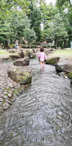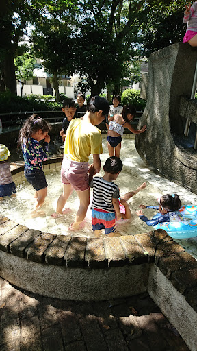 Read moreじゃぶじゃぶ目当てで来ました。 木陰も半分くらいあって大人も過ごしやすかったです。 遊具は滑り台、ブランコ(赤ちゃん用の椅子とかは無し)、鉄棒、ジャングルジム二種、砂場のみで、乳児には厳しいselectionです。 機関車を模したモニュメント?があって、客車にはベンチがあり休めますけどこれと言って遊べるスペースはないのですが、5歳や3歳の子は石炭くむフリとかして創造豊かに遊んでました。 木が多いのでセミを捕まえて遊ぶ親子、通路が広いので子供用バドミントンやバッティングで遊ぶ親子がいました。 砂場の周りに謎の道がありましたので、もしかしたら自転車で回って遊んでいいのかもです。 唯一、トイレが和式+男性用のしかなくて、オムツ離れしたばかりの子に...