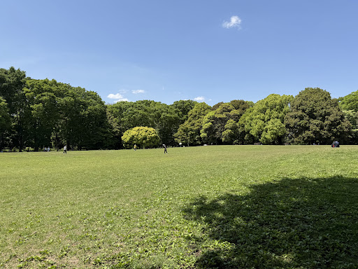 広場の魅力はやはり広大な芝生です。子どもは裸足になって走り回り、大人はレジャーシートを広げて寝転がり、犬は自由に駆け回る。そんな光景が日常的に広がっていて、訪れる人のマナーが比較的よいせいか、不快な思いをすることも少なく、穏やかに過ごせます。都内の多くの公園では禁止されがちなボール遊びや簡単な球技もここではできて、サッカーや凧揚げを楽しむ親子連れの姿もよく目にします。小高い丘があるので、段ボールを持ってきて草スキーをして遊んでいる子どもたちもいて、その無邪気な笑い声を聞いていると、こちらまで心が解放されていくようです。
