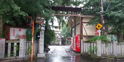 境内表参道入口の向って左手に大きな布袋尊像がありますが、それはkm(国際自動車)グループ中興の祖である故・波多野元二氏が本社社屋に安置していたもので、社屋移転の際に氏神である当社に移したものとこのこと。