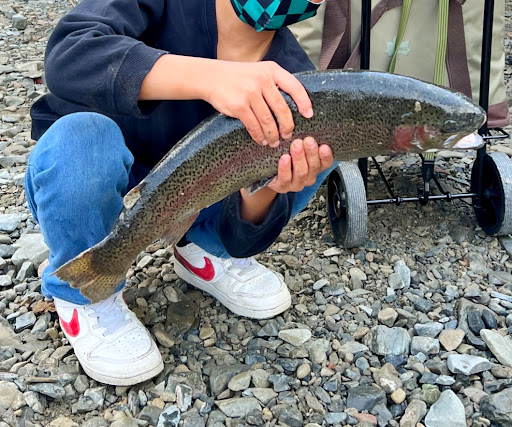 二回の放流はお客さんの入りの様子で時間を決めるとのこと。小さくて釣りやすいマスだけでなく50cmくらいの大物も!? 今回ゲットしました〜!!釣れた魚は帰るまで冷蔵庫で保管していてくれて手厚かったです。