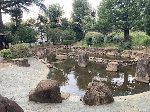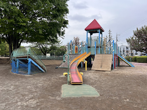 車通りのある道路沿いにある公園で、全体的には体育館~サッカー場ぐらいの広さがあるかと思われ、道は石畳と砂地、芝生、コンクリートの部分があり、南東側の入口側には男女別トイレがあり、その後には大規模な複合型滑り台と、ジャングルジム、スイング遊具が3つあり、ベンチなどもある。また、南西側には池状(水位は大人の膝よりは低いと思われるが、雨の日はこれより上がると思われる)な所があり、この池状は、北西側にある丘から南西のエリアまで西側を小川が流れている(冬は凍るが、水は定期的に流れているようだ)。池のエリアには桟橋があり、すすきか葦が多く生えている。また、池の南西側エリアから北西側エリアまでは砂地と樹木の中を歩く歩道になっていて、北西側は石畳のエリアがあり、背もたれありベンチ2つがあり、小川の側にやや急ではある石の階段上で近づける。この小川と丘を挟んで北~北東側は芝生と砂地の広場になっていて、この公園の5割~6割を占める印象があり、ベンチ8以上と、健康器具がある。また、丘は土と芝生からなり、木の階段か斜面を上がる感じ。ベンチは計14~16あり、楠の木や椎ノ木、銀杏、けやきの木、松、桜、椿や金木犀やつつじなど、自然を多く感じるが、配置...