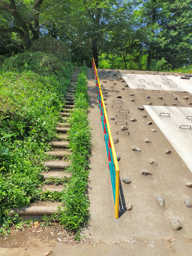 There are small slider and roller slider and some other playground equipment with small hill, it's very exciting playground for small kid's. You can see Musashino-train running from this park, it's also fun for...