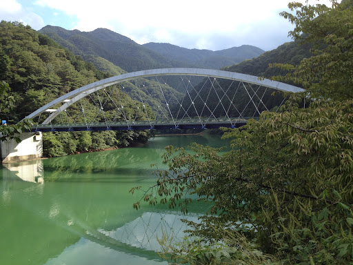 Read more奥多摩湖の最奥、周遊道路の入口で小菅川を渡る橋。1970年(昭和45年)架橋の鋼バスケットハンドル型ニールセンローゼ橋。橋長132.3m、支間長131.2m、幅員9.5m。国内最初のニールセンローゼ。奥多摩湖に架かる橋の中では新しく、近代的なフォルム。 橋上からは奥多摩湖の広々とした風景が、アーチの下から見上げると迫力ある姿が堪能できる。 欄干にはレリーフが施されている。シカ、ヤマメ、ミツバツツジの三種類。 となりの深山橋の南詰あたりから湖畔に下る階段があり、そこから小菅川の起点まで下ると、三頭橋の遠景を堪能できる。 アクセスは、深山橋の南にあ...