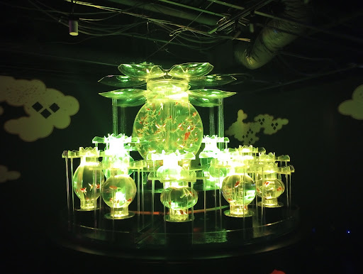 Went to the Goldfish Art Exhibit on 7 or 8th? Floor. You must puchase tickets before going. Little bit of a maze to get there, navigating escalators & elevators, but worth it. Ask for help if you get confused. We Rented the audio tour which made it even better. They pointed out details I would have missed. But each of the exhibits were absolutely gorgeous! Flowers, music, scents, lights, crystal, lovely goldfish swimming around, even their shadows were beautiful. The rest of the building seemed to be high end stores with fashionable clothing,...