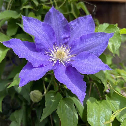 お庭を眺める楽しみのあるお寺です。 訪ねた日には、可愛らしいテッセンが咲いていました。