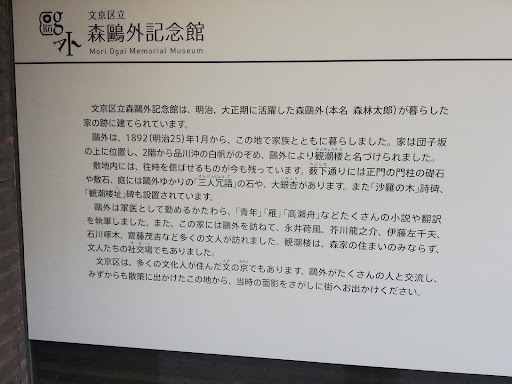 鴎外が30歳から没するまでの30年間を過ごした居宅「観潮楼」の跡地に建つ、文京区立の資料館です。 鴎外の生涯の解説や直筆生原稿などが展示されています。