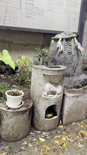 Read moreIf you consume seafood, you can give thanks at this shrine to the creatures that feed us. 波除稲荷神社 Namiyoke [protection from waves] Inari Jinja near the former Tsukiji Fish Market, had memorials to 蛤石 Hamaguri (clam), 活魚塚 Katsugyozuka-(katsugyo are fresh seafood that has been brought to land alive and kept in tanks before preparation), 鮟鱇 (あんこう) 塚 Ankozuka (monkfish is a deep sea creature that is frequently eaten in the winter), 海老塚 Shrimp, 海老の大丸 (tempura shrimp), すし塚 (sushizuka for sushi), 玉子塚 (eggs) and even 昆布塚 (kombu seaweed). The 末社の天祖神社 Massha no tensojin-sha shrine houses four deities: 天照大神 Tenterudaijin Amaterasu (天照) (Sun Goddess), 大国主命 Ōkuninushimikoto (ruler of the unseen world of spirits & magic/God of nation-building, farming, business, & medicine), 少彦名命 Sukuna Hikona Mikoto Sukuna Hikona no Mikoto (God of Medicine and Wine) and 天日鷲命 Amanohi Washi no Mikoto. The shrine has a pair of wooden lion's heads that are paraded through the neighborhood during the shrine's festival. 獅子殿 (厄除天井大獅子) Shishi-dono (Yakuyoke Tenjo Ōjishi) Male lion's head and 弁財天社 (お歯黒獅子) Benzaitensha structure (Ohaguro jishi [black toothed female lion's head]). Each is housed in it's own building. There is a display of the 七福殿 Seven Lucky Gods reimagined as seafood: ホタテい Hotate i (with a scallop shell hat) 布袋 Hotei フグろくじゅ Fugu rokuju (blowfish hat) 福禄寿 Fukurokuju タコキュろうじん Takokyu Roujin (Octapus hat) 寿老人 Jurōjin イカもんてん Ika monten (Squid hat) 毘沙門天 Bishamonten べんサザエてん Ben sazae ten (Horned turban sea snail hat) 弁才天 Benzaiten エビえびす Ebi Ebisu (Shrimp hat) 恵比寿 Ebisu タイこく Tai koku (Sea bream hat) 大黒 Daikoku (The names have been tweeked a bit.) There is also a small shrine to the fox deity おきつね様...