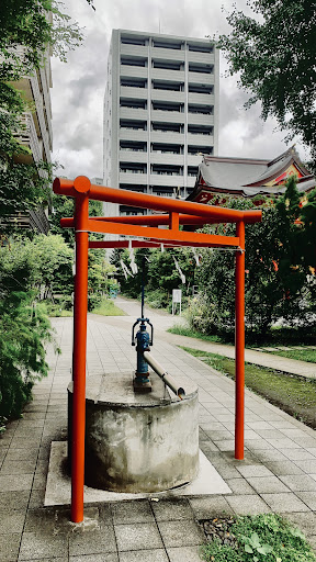 Read more新宿のビル群というより、西新宿のマンションや住宅に囲まれた神社で、新宿でありながら休日でもとても静かで、訪れる人も少ないです。南と西に高層ビルやマンションが立ち並ぶため、夕方は少し薄暗い印象を持つかもしれません。 南北に伸びるやや細長い境内ですが、境内を見て回るだけなら30分程度で済みます。大小様々な建物が境内にありますが、一番目を引くのは、本殿と鳥居の鮮やかな朱色だと思います。無機質なビル群に囲まれているからこそ、余計に朱色が生えるのかもしれません。 また、境内には数々のパワースポットがあります。境内の奥には、5分程度で登ることが出来るくらいの高さの富士塚があります。他にも七福神の像が境内の中に配置されていたり、祭りの余興の力比べで使われていた『力石』があります(こちらは地面に埋められているため、取り出して使うことは出来ません)。