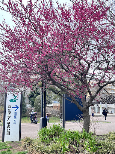 A medium size park for local residents. Besides bring a leisure ground for locals it also serve as a evacuation ground in case of disaster. Design of its facilities reflects Japan's preparedness for natural disasters. Tents could be erected around children playground fittings to provide shelters. Bench wooden top could be removed & steel stand be used as stoves. Meticulously designed for multi purposes. Kanzakuras are in full blossom right now, make best use of the few remaining sunny days to enjoy...