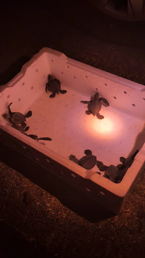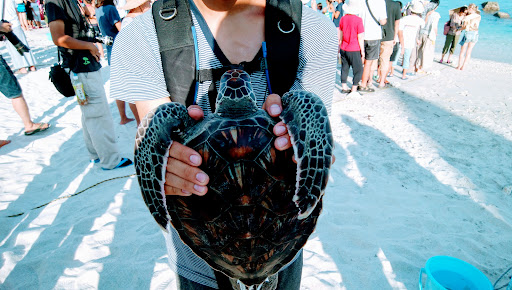 ウミガメの放流体験 奇跡的に、ウミガメの放流体験をすることができました。滞在期間中に生まれないとできないことなので、とても貴重な体験でした。指でウミガメの赤ちゃんをつまんだときの一生懸命にヒレで指をたたく感触がまだ忘れられません。