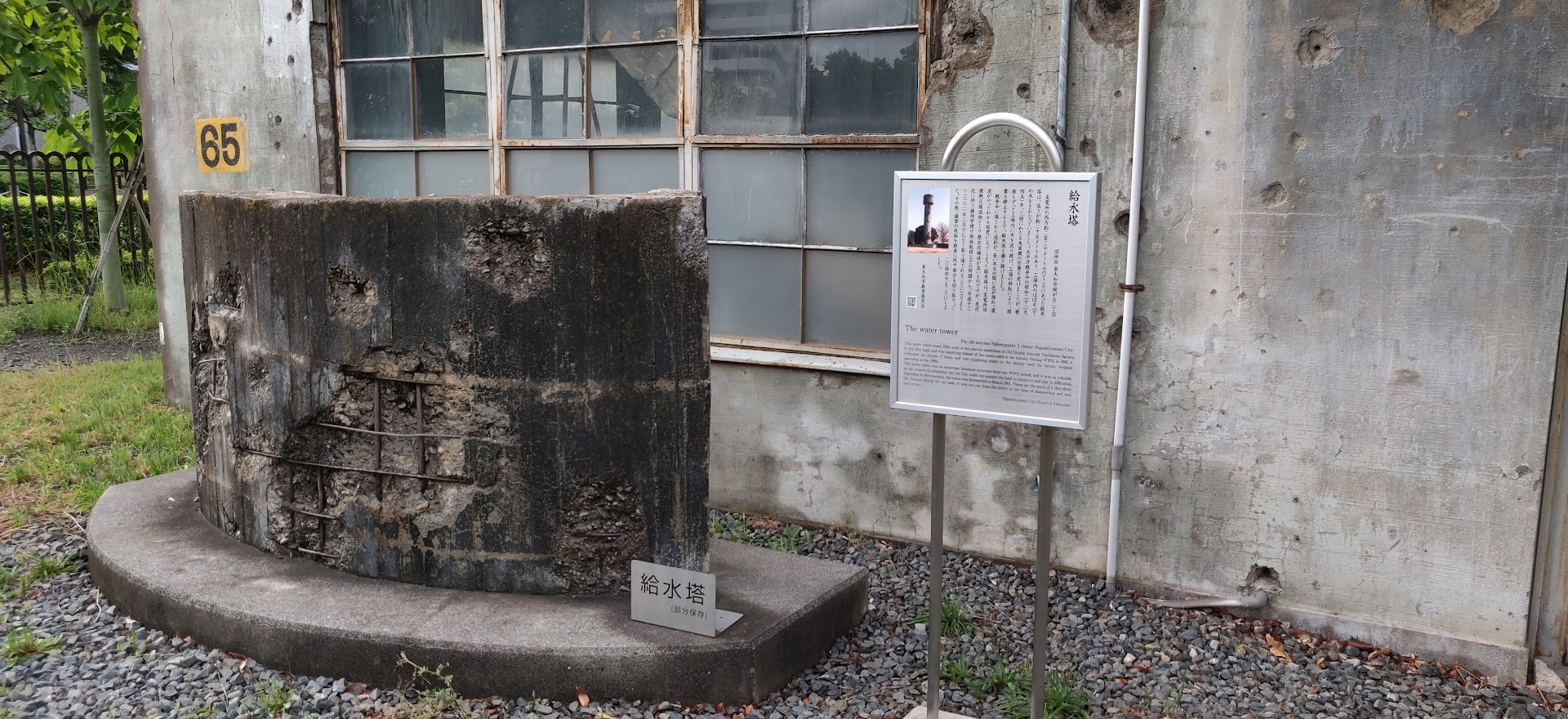 穴ぼこは米軍による三度にわたる空襲の痕であり、驚くことに、平成時代までこのままの姿で、現役として使われていた。 なお、同様の歴史を辿った給水塔については、予算の関係から、塔の土台部分の一部を除いて、取り壊されてしまった。変電所跡の建物の手前に土台が無造作に置かれている。
