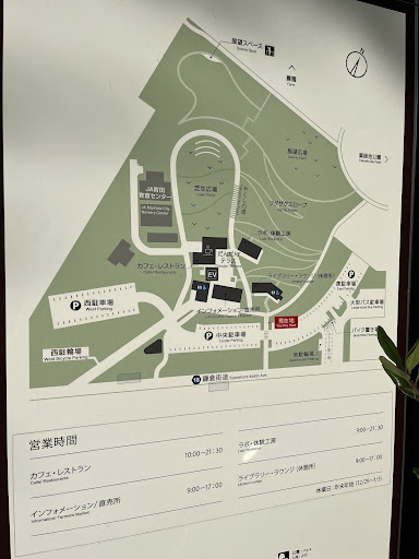 ○西園駐車場 130台 ♿障害者マークの駐車スペース 4台 ↳ライブラリラウンジ前 一般車用入口は今井谷戸側寄り、右折進入禁止 入庫後 1時間まで 無料