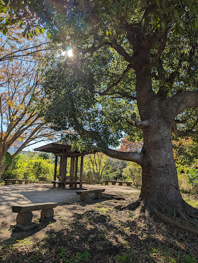 Read more車通りのある道路沿いにあり、近くに横断歩道もあるが、歩道橋を渡ると降りた所が入口。けやきの木、桜、銀杏、栗、椎ノ木、つつじ、シュロの木、桑の木まであり、緑地と芝生、が多く、一部砂地で、コンクリートの遊歩道をゆく感じ。所々に遺跡跡などがあり、背もたれなしベンチ6つ、テーブル席5つがあり(日なた)、入口付近には公衆トイレと手洗い場があり、真ん中辺りには東屋がある。団地と隣接していて、散歩や通勤、通学などで通り...