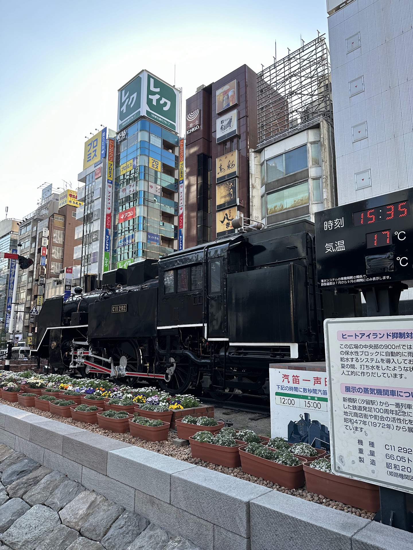 If you are looking for a place to meet in Shimbashi, where there are many Izakaya (Japanese style pubs), this is definitely the place to go. There is no doubt that you will get lost, especially if you meet up in front of the SL that is the square's icon, but on the other hand, there are so many people thinking the same thing. In addition, most of them are in suits and it's hard to tell them apart, especially at night. If you decide to meet up, you should specify in detail, such as being in front of the tip of the SL, not simply in front of it. Sometimes tents for product fairs are set up in this square. You'll be able to enjoy the local products. In winter, the SL is illuminated with lights, which are brilliantly decorated, but not very romantic. Because at that time of year, there are a lot of businessmen who lack the decency to get...