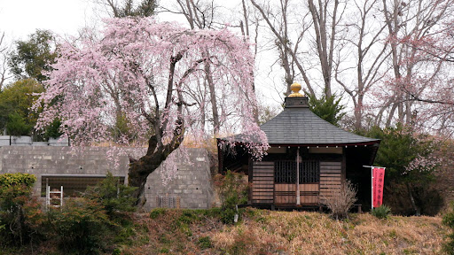 Read more入口横にある枝垂れ桜が見事。見頃はソメイヨシノのそれより一週間ほど早い。高台の墓所にも一本枝垂れ桜があるが、こちらはまだ若い感じがする。 お寺は北条氏照公の開基というが、元々西に500mほど行った氏照公供養塔近辺のお寺を明治になって現在地に移転したとのことで、氏照公とのゆ...