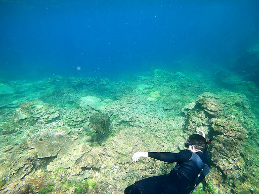 Read moreこの旅行の一番の目的である『シュノーケリング』のために行きました。 青い空、青い海と陽気な音楽が流れいていますが、そこまで人はいないので芋洗い状態にはなりません。 スキューバダイビングもできるようで、ダイバーさんもいました。 また、防波堤から飛び込めるようで元気な若者たちが飛び込んでいました。 飛び込みって青春ですよね。私は良い年なのでしませんでした。 人生初めてのウェットスーツを着て思ったのは、スーツアクターさんって凄いなということでした。これだけで海にプカプカと浮かべられるのでシュノーケリングしないでずっと浮いていたいなーと思ったのは秘密です。 インストラクターの方に連れていってもらった場所には海ガメがいました。あんなに間近で海ガメを見られて感動しました。 魚やサンゴ礁も見れて綺麗でしたが、初めてだったのでやや緊張しながら泳いでました。夏の水難事故は毎日ニュースでやってるので油断は禁物です。 教えてくれたインストラクターの方は、怖いなと思ったら小さな浮き輪を掴んでて下さいと言ってくれるので小さなお子さんでも安心にシュノーケリングできると思います。また、小さなお子さんにはウェットスーツの他にライフジャケットも装着してくれるのでさらに安全度は高まります。 自分の足が絶対に付かない深い海の底に泳ぐ魚や海ガメをたくさん見れて楽しかったです。 ※海の中の写真はインストラクターさんが撮って後日、メールでくれたもの...