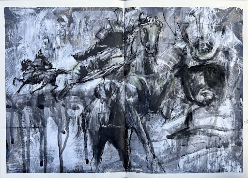 I have a deep connection with this general and his war by imagining fighting with him and looking at this statue. There are a few parts that are particularly interest to me. His mysterious face, the muscles of the front legs of the horse, the gesture of his hand and the reins which tightly control the horse.