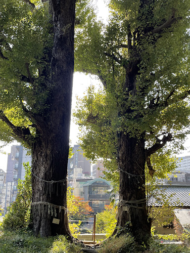 This shrine is located precisely between the Hotel Chinzanso and the Higo-Hosokawa Garden. Two magnificent ginkgo trees stand tall, and I was deeply moved climbing the stairs. It's a mysterious and sacred place. Please visit on a sunny day, as it might be slippery at night.