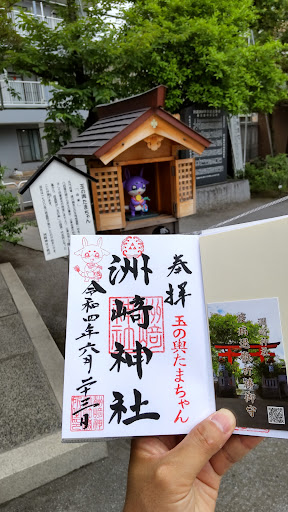 この神社へクルマで行くときは、接近してからが面倒な道なので、下調べをして向かった方がいいです。三つ目通りを東京湾方向に進むと、バス停「木場六丁目ギャザリア前」停留所が左に見えます。この先の角を東へ左折して進んだ先に橋が見えてきますから、これは渡らないで、手前の交差点を北へ左折すると正面に神社の車輛入り口があります。道は左へ曲がりますが、そのまま境内へ突っ込み、右手の駐車場へ入れます。三つ目通りを南から来る方は、なんとかして対向車線に方向転換して同じ経路で入る以外にありません。ほかに、大門(おおもん)通りから洲崎へ入ってすぐに右折していくこともできます。この経路を選ぶときは、永代橋通りを東へ曲がれば行けます。この洲崎神社は近世終わりまで、弁天様を祀るお寺の境内社でした。おこんこんさまも同居していたので、明治に至って神仏分離して洲崎神社になったとゆう、よくあるご由緒です。神社裏手は、ずっと昔は江戸湾の海で、洲崎の遊郭が埋め立てられてからは水路部分が大島川の支流となってしまい、そこに架かる橋の名は弁天橋。その肝心な弁天様は現在は本殿向かって左の小祠に祀られています。本殿のご祭神は安芸の厳島神社の市杵島比売命(いちきしまひめのみこと)を祀っています。そのほかに、ごく最近ですが、もともと江戸時代に犬公方として有名な五代将軍綱吉公のお母さま(桂昌院)の弁天信仰が熱心だったことから、この方の幕内の出世経歴が驚異的で三代家光に寵愛を受けて、みごとに玉の輿に乗った出来事に肖って、玉の輿「たまちゃん」が立派な祠付きで本殿向かって参道左に鎮座坐ましています。このご神体がですね、ポケモンのキャラと見紛うような出で立ちで、サンリオのクロミを足して二で割ったような風貌で開帳されておりまして、ちびっこや陽キャのみなさまにとても人気があります。この神社オリジナルキャラクターは、とても優れた試みであり、お歳を召した方の中には掌を合わせる気には到底なれないとゆう方もいらっしゃるみたいですが、個人的にはぜひ他の神社さんも見倣ってほしいと感じております。そして当然ですが、お守りはもちろん、絵馬・御朱印まですべてに登場して、神社の示すところでは、海が近いこともあって、航海・交通の安全から始まり、洲崎が隣なので諸芸上達・芸術的センス向上・話術,美貌,魅力度向上もくっつけて、良縁成就・立身出世・知識・商売繁盛・金運・財運向上・富貴栄達など、けっきょく厄除けと安産と当病平癒以外なら何でも聞いてくれる神さまに列せられています。扱っている授与品もたいへん多く、授与所常駐でよく捌いております。神社がオリジナルキャラの力を借りるとき、当たり外れもありますが、大変なパワーを振るうことが可能で、仮に、近隣の大きな🔪神社🗡️がたいへんな出来事⚔️の最中でも、十分に参詣者の受け皿として惹きつける効果があったようです。あとは...