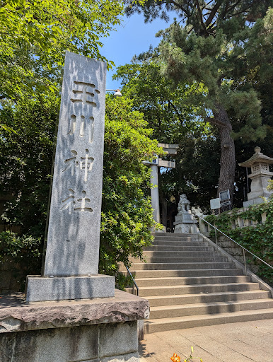 Read more2024.6 等々力駅から徒歩約5分。 緑の多い静かな神社です。 拝殿の鈴は一般的な本坪鈴ではなく、手持ちの鈴が置いてあります。 土が露出している部分は非常に滑りやすくなっているのでお気をつけください。 正面鳥居のすぐ右脇にあるクスノキの樹形が特徴的です。 【御祭神】 天照大御神・伊邪那岐神・伊邪那美神・事解男神・大国主神・少彦名神・日本武尊・建御名方神 【由緒】 御当社の創建は不詳であるが、御社号を元熊野神社と申し上げて居りましたが、明治四十年に村内に奉祀されておる、神明社、御嶽社、諏訪社の三社を合祀し、同時に地名を採り玉川神社と御改称致しました...