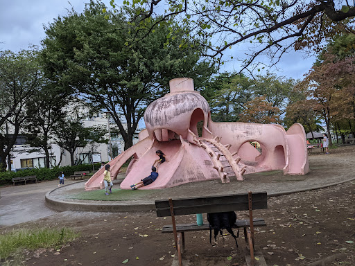 Read more通称「タコ公園」として親しまれています。タコは時間帯によって、女の子ばかりの時間帯、小学生が鬼ごっこをしている時間帯(危ない)、中学生が携帯ゲームをしている時間帯、みたいに分かれますが、3歳にもなれば一通りの遊具で遊べますので、いつ来ても遊べないことはありません。 夏の時期は屋外のプールも開放されます。週に3回程度、朝の8-9時に清掃されますが、清掃された日でも夕方の時間帯にはドロドロ(小学生が靴のまま入ったりするため)ですし、小さい子を水遊びさせるなら、午前中に来るか、小川の方で遊ば...