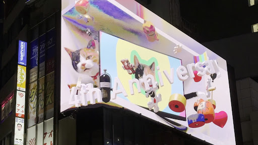 đž Highlights & Experience ⢠Screen Size & Quality The billboard spans about 8âŻm high Ă 19âŻm wide (ââŻ150âŻm²) with 4K resolution and a curved design that creates a stunning 3D effectâmaking the cat appear as if itâs stretching out or climbing the building facade (). ⢠Lifelike Animations The cat displays a range of behaviors: it wakes, meows, leaps, and naps. These animations recur every ~15âŻminutes, from early morning until 1âŻAM ďżź. ⢠Creative Design Designed by Omnibus Japan, the cat was inspired by âNatsuko,â the real calico owned by artist Mariko Satake. It even wears a collar reflecting traditional Japanese craft, and one of its patches resembles Shinjukuâs shape ďżź. ⢠Cultural Hit Since launching in midâ2021, it quickly became an internet sensation, earning design awards and coverage from global outlets including CNN, NBC, and...