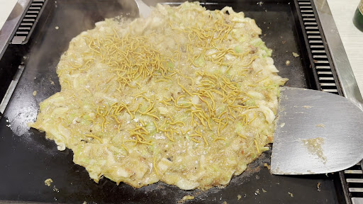 Read moreRevisiting Tsukishima after five long years has been like flipping through the pages of a cherished photo album, where each memory is a savory delight. The process of cooking Monjayaki is almost ceremonial: you start by artistically arranging a circle of crisp cabbage and your choice of toppings on the hot griddle, a mosaic of colors and textures awaiting transformation. The 'Monja' mixture, a medley of flour, water, and dashi, is then ceremoniously poured into the heart of the cabbage ring. The trick to achieving that perfectly gooey consistency lies in the patience of letting it simmer and blend with the medley of ingredients, stirring with tender care until it reaches the desired thickness.