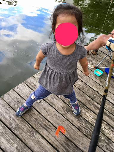 Read more2019年5月に子供と行きました。 池の周りはウッドデッキになっていて公園の雰囲気も良い感じです。 釣具はレンタルできるので手ぶらで釣りが楽しめます。 家族連れ、カップル、子供たち、気合の入ったベテラン勢で賑わっています。 行ったのは13時ごろ。 1匹も釣れませんでしたが、釣り初体験の子供と良い経験ができました。 後半子供は飽きてしまい断念・・・。 ベテランと思われる方が優しく教えてくれます。 餌の沈む位置が重要みたいで、ウキの調整をしてくれました。 魚のいる水深に餌を落とし込むのがポイントだそう。 水質管理の関係からまき餌やねり餌は使用できません。 餌は¥100で購入することになりますが、リアル芋虫です😂(写真はボカシ入れています) 虫が苦手な方は完全にoutだと思います...