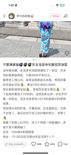 However, I did feel a bit disappointed at the end. One of the staff, one of the staff helped me throughout the process. But when it came time to pay, one of her colleagues tried to confirm the price of the yukata I chose, and she stopped her and responded with a bit of a smug smile. It gave me the impression that she was happy I didnāt question the price. What surprised me most was that she assumed I didnāt understand Japanese ā I overheard her say, āSheāll pay for premium,ā even though I was sure I chose the tier below that. I didnāt want to make a scene, so I just went ahead and paid, but it left me with mixed feelings.