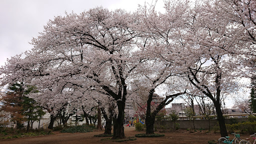 国立市のさくら通りに面した大きな公園です。 北側に大きなマンションが2棟ある他、南東方面に団地もあり、隣にはスーパーマーケットも…… 一部工事していますが…広場も遊具も揃っています。 公園内には土を盛った所が2カ所ほど作られており保育園児と保育士が鬼ごっこして遊んでいました。 大きな樹木もあり昔は雑木林だったのではと想像します。 遊具は 小さな恐竜滑り台1基・スプリング式乗り物2基・ブランコ・アスレチック式滑り台1基・砂場・水遊び広場?・木製ベンチ多数あります。 水遊び広場?の脇には時間〜見られる時計塔も設置されています。 北側にはテニスコートも設備され、傍らに藤棚・ソーラー式携帯充電器もありますが、同じ通り沿いにある公園同様、USBケーブルが抜かれ壊されてしまっています。 とても残念ですね。 トイレは仮設、水道は2カ所?設置されています。 西側には東京女子体育大学が見えます。 おそらく、さくらシーズンになると大学通り・さくら通りのさくらを満喫しながらひと休み...