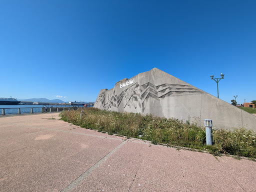 ここまでくる道のりは、関係者立ち入り禁止なんじゃないかってくらい、港湾エリアの奥にあり、案内板などもなく進んで行くと駐車場もある公園にたどり着きます。
