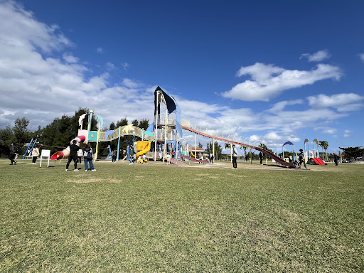 Large playground located near the beach. It seems like a popular spot for locals to come. There is also a large field to run about and the kids enjoyed playing on the field.