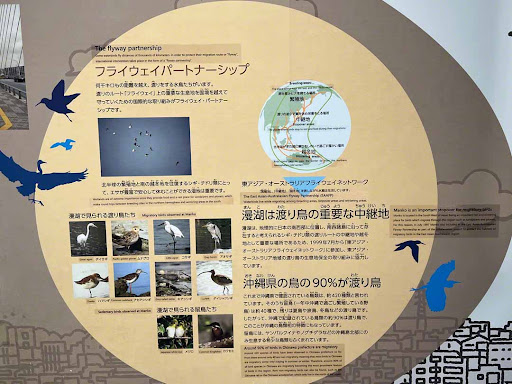 This is a good attraction to get outdoors in and see some of the wildlife visiting Okinawa. Wooden boardwalks lead you through some wetlands that would be impossible to see from the highways. Staff are friendly, the facilities are clean and Coronavirus precautions are observed. Masks are required and alcohol hand cleaners are provided. There is no entrance fee to be paid. There are brochures available in several languages, informing visitors about the wildlife and plants to be seen. Upstairs (on the second floor) telescopes are available to use if, you don't want to get out in the weather. My recent visit was on a cloudy day so, I didn't capture any great wildlife photos. I will return when the sun is shining for...