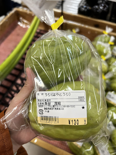 This mall offered a wide variety of vegetables. We haven't seen a "sayote" (referring to the picture) in Matsuyama yet. I don't see this kind of vegetable...