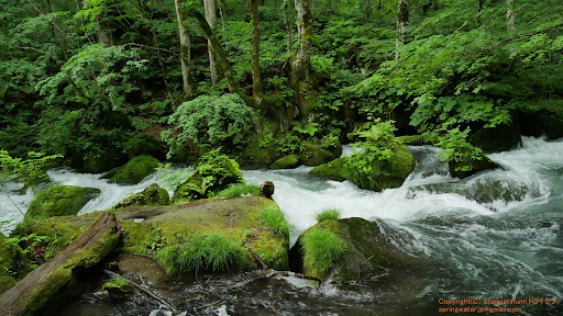 個人的には白銀の流れがイチオシである。人が少なく、またロードノイズの邪魔が入らず渓流美を楽しめる(渓流歩道の半分ぐらいは車道と並行しており、実は結構うるさい、白銀の流れはそれが無い)。白銀の流れの少し南側(湖側)に数台の駐車スペースがあり、そこからアクセスできる。