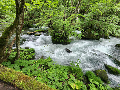 奥入瀬渓流はGoogleMapだと石ヶ戸と子ノ口(湖側)約8km2時間と出る。観光パンフレットだと3時間とかなっているが、実際スタスタ歩くだけだと、それほど早足にならずとも、2時間で登れてしまう。上りが続くが傾斜は基本緩やか、というか、ほぼ平坦な感覚で、所々にあるアップダウンを除けば、表参道の方が遥かに傾斜がある、そんな感じである。歩道自体もよく整備されている。