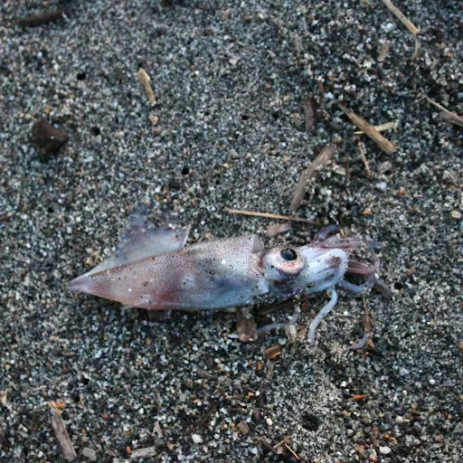 波打ち際に身投げしたホタルイカが数匹いました。