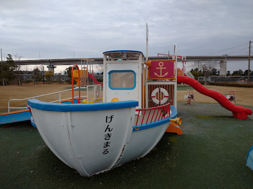 広々とした土地に公園、芝生があり、少し離れた場所にパークゴルフ場もあります! 公園の遊具は3才未満児用と3才以上用とあり、滑り台を中心とした遊具があります! 特に3才未満児用はとても良いです! 遊具の高さが低いところで20~30センチと低めで、安心して遊べます! 射水市だけあって、船の形の遊具になっており、操縦室のハンドルが人気です! このような安心して楽しく遊べる室外の公園遊具は県内であまり見たことがありませんので、小さなお子さま向けでは特にお薦めです!