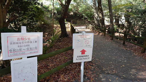 Kohaku in 1505. Ikeda Terumasa, one of the feudal lords, was transferred to this castle in 1590. He began to build a splendid castle worthy of this high income ( 152,000 koku ) . But Ikeda was transferred to another castle about ten years later, leaving this castle uncompleted. Afterwards, this area enjoyed a long peaceful period and a castle became unnecessary. That is why Yoshida Castle remains uncompleted. Nowadays, there are mossy stone walls and one remaining turret ( storehouse ) where the castle stood. These ruins are a wonderful window...