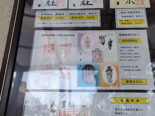 2 御朱印 ■ 種類は 7 種類です 吉田神社と境内社の金柑丸稲荷 神社、手筒花火、見開きサイズの 頼朝行列の御朱印は、いつでも 頂けます。祇園祭の御朱印は、 毎年 7 月限定です。また 元日~立春期間限定で「一陽来復」 の御朱印を頒布していました。 豊橋御朱印巡り特別御朱印は、 吉田神社、安久美神戸神明社、 普門寺、赤岩寺を巡った方だけ 頂けます。