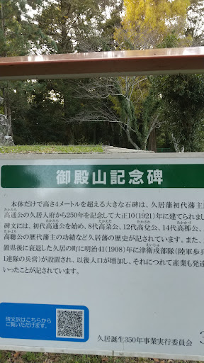 [公園と久居の歴史] 高通児童公園はかっての久居陣屋の一角にあり、公園内には久居誕生(高通入府)250年を記念した「御殿山の記念碑」(大正10年建)、軽便鉄道開通に貢献した玉井丈次郎の顕彰碑(昭和3年建)、本村と久居町の合併記念碑(昭和8年建)・久居市の市章を掲げる青年像などがあり、久居の歴史に包まれた殿山として、また桜の名所として、市民に親しまれています。