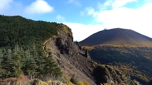 Read more浅間山の第一外輪山は、前掛山を含む第二外輪山と中央火口丘が作り出す他には無い独特な風景を見られる、絶好の展望台です。第二外輪山と中央の釜山火口を擁する火山体は、標高の低いところは落葉松林で、高いところは草木がなく黒々とした滑らかな台形で、秋は黄金に輝く落葉松林に彩らた「浅間ゴールド」、初冬には標高の高いところだけに雪が積もった「ガトーショコラ」など、迫力と美しさを兼ね備えた絶景となります。