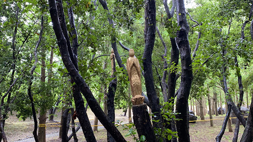 Read more現代アーティストである西野達さんによる作品。もともと憩いの場として整備されたものの放置された森の生木の枝に33体の金の仏像が彫られている様は神秘的。木の成長とともに姿も変化し、仏像から枝が生えていたり、小さな花がついていたりする。雨の日は地面がぬかるんでいるので歩きづらい。夜はちょっと怖いかも。アートに力を入れている津奈木町なら...
