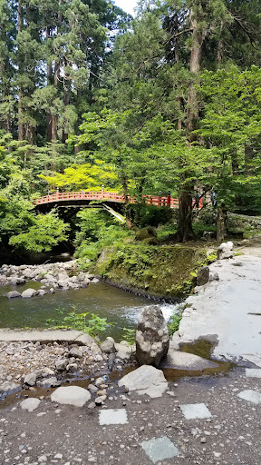 祓川に架かる神橋からは須賀の滝を望むことができる。この須賀の滝は、導水して人工的に配したものとある。随分と演出が上手い。