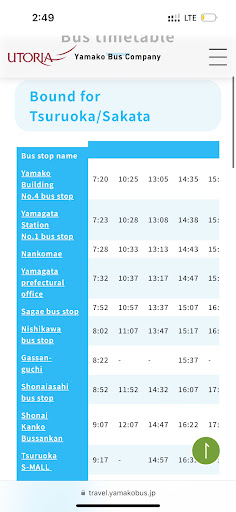 We started early and first took the 7.23am Utoria bus by Yamako bus company from bus bay 1 at Yamagata Station (bus timings are easily accessible in English via the Yamako bus website if you google “Yamagata to Tsuruoka bus”). It is a highway express bus (which looks like a coach) which makes the commute much faster compared to train, and no reservations are required. We paid by tapping our Suica cards (about 26000Y for a one way trip) as per any local bus. The ride took ~2 hours and we arrived at 9.20am.