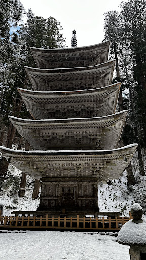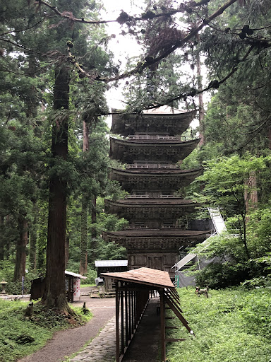 Read moreSplendid five story pagoda nested in the forest of Yamagata Prefecture. The entrance gate istself is majestuous. Several shrines are scattered on the way with interesting descriptions and you can also see a waterfall midway. There's a small parking nearby and a few steps down to arrive there. A hidden gem accessible...