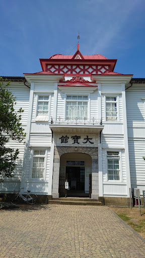 鶴岡公園内にある大寶館は、大正天皇の即位を記念して創建され、大正4年(1915)に完成した。 物産陳列場、図書館等に使用され、昭和63年からは郷土人物資料展示施設として使用されている。