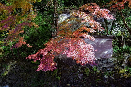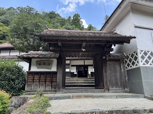 楽山荘庭園は掘庭園の中心となる庭園です。背面の自然の岩山の斜面を利用した池泉廻遊式庭園で、山の斜面を人工的に削って滝を落とし、池を掘り、木を植えて、飛び石や石段を置き散策できるようにした庭です。この庭は、山の斜面に沿って盛土をして石垣を築いて作った平場に屋敷とともに作られており、大正時代の庭としてはやや古風なスタイルで、これは古い時代の山岳仏教寺院や、室町時代の雪舟の庭などでよく見られるものです。この堀庭園がある津和野や隣接する益田は、雪舟が活動拠点としていた地域の一つで雪舟作庭の伝承をもつ庭園が残されています。よってこの楽山荘の庭園も伝統的にその影響を受けているのではないでしょうか。庭内には、池の中に据えられた大型の雪見灯籠やその背後の山の斜面に十三重の石塔をはじめ大小17の石灯籠や石の祠などが所狭しと置かれ、主木である樹齢百年以上と思われる紅葉の大樹やツツジ、サツキなどの植栽が美しい景観を構成しています。背面の岩山の斜面は急角度ですが石段がかなり高いところまで続いており滝の前にかかる石橋を渡ることもできます(現在は通行止め)。このように滝の上部に小さな石の反り橋が架かるスタイルは玉澗式と呼ばれる安土桃山時代などに流行した様式です。玉澗式は基本的に縮景による表現がほとんどですが、実際に人が渡れるサイズのものは珍しいかもしれません。滝の上部のあたりまで石段をあがっていくと、庭はもちろん、道を挟んだ反対側の山の斜面に築かれた「和楽園」まで一望することが出来、この掘家の屋敷の周囲の環境すべてが庭園として整備されている事がとてもよくわかります。楽山荘一階の「なつめ型」縁先手水鉢は大変大きく立派で「水琴窟」も作られており、竹筒に耳をあて神秘的で美しい音色を聴くことが出来ます。また、楽山荘の建物や庭などの敷地を支えている石垣は主屋の裏山から採掘した緑色の石(輝緑石)を加工して造られたもので、寸分の隙間もなく積まれ、端正で美しい曲線を描き目を奪われます。蟻も通わぬ石垣と呼ばれているそうです。石を薄くスライスしてコンクリートに貼り付けている?と誤解しそうですが、立体的な石を組んだ本物の石垣で、明治時代の石工の高い技術を今につたえる貴重なものとなっています。 ...